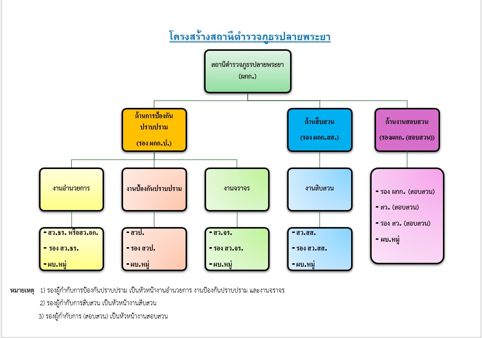 (O1) โครงสร้างและอำนาจหน้าที่ โครงสร้างสถานีตำรวจภูธรปลายพระยา Loading... Taking too long? Reload document | Open in new tab Download Loading... Taking too long? Reload document | Open in new tab ข้อมูล ณ วันที่ 5 เม.ย.68